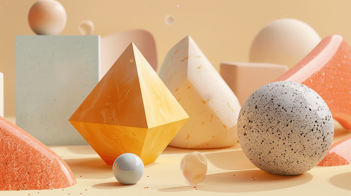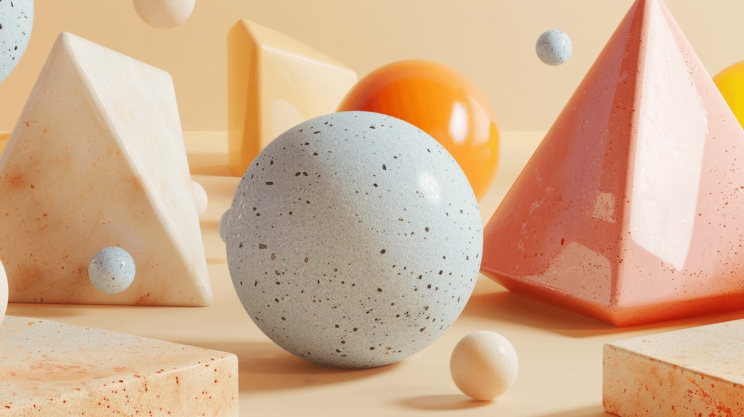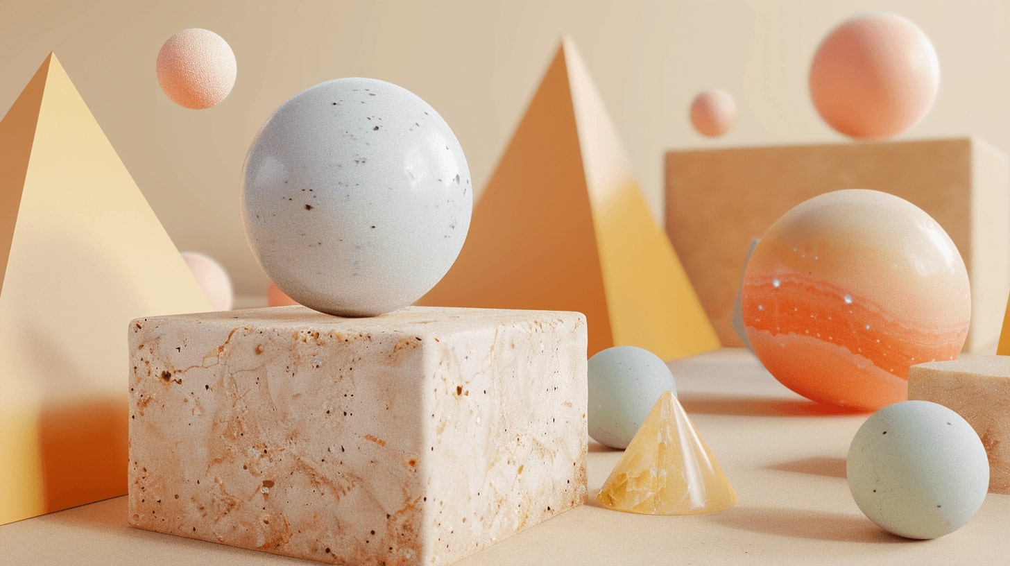 Sculpturi în piatră reprezentând forme geometrice tridimensionale