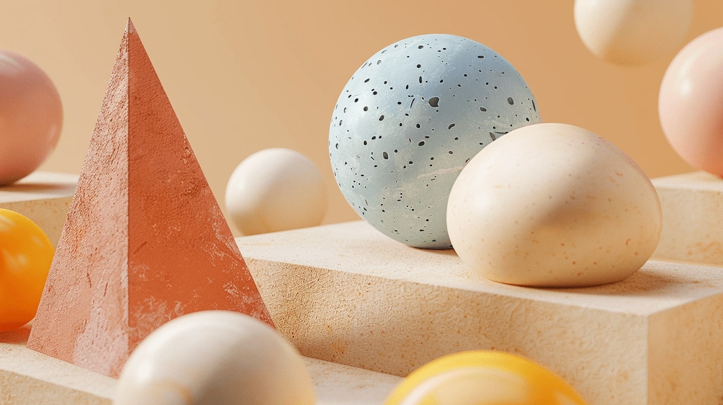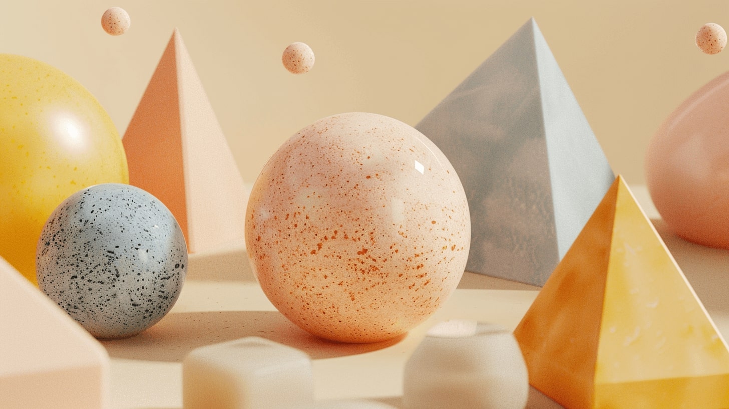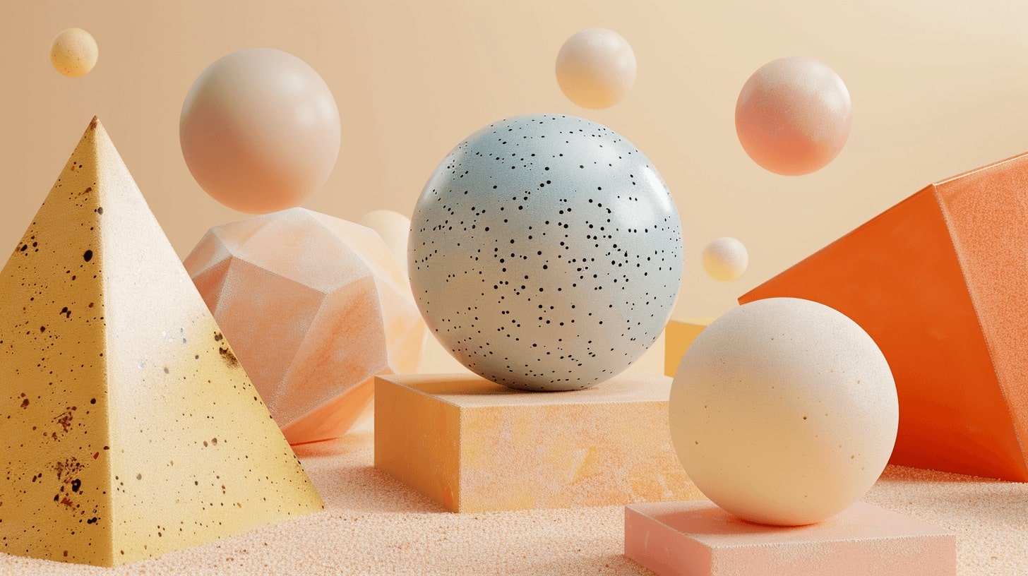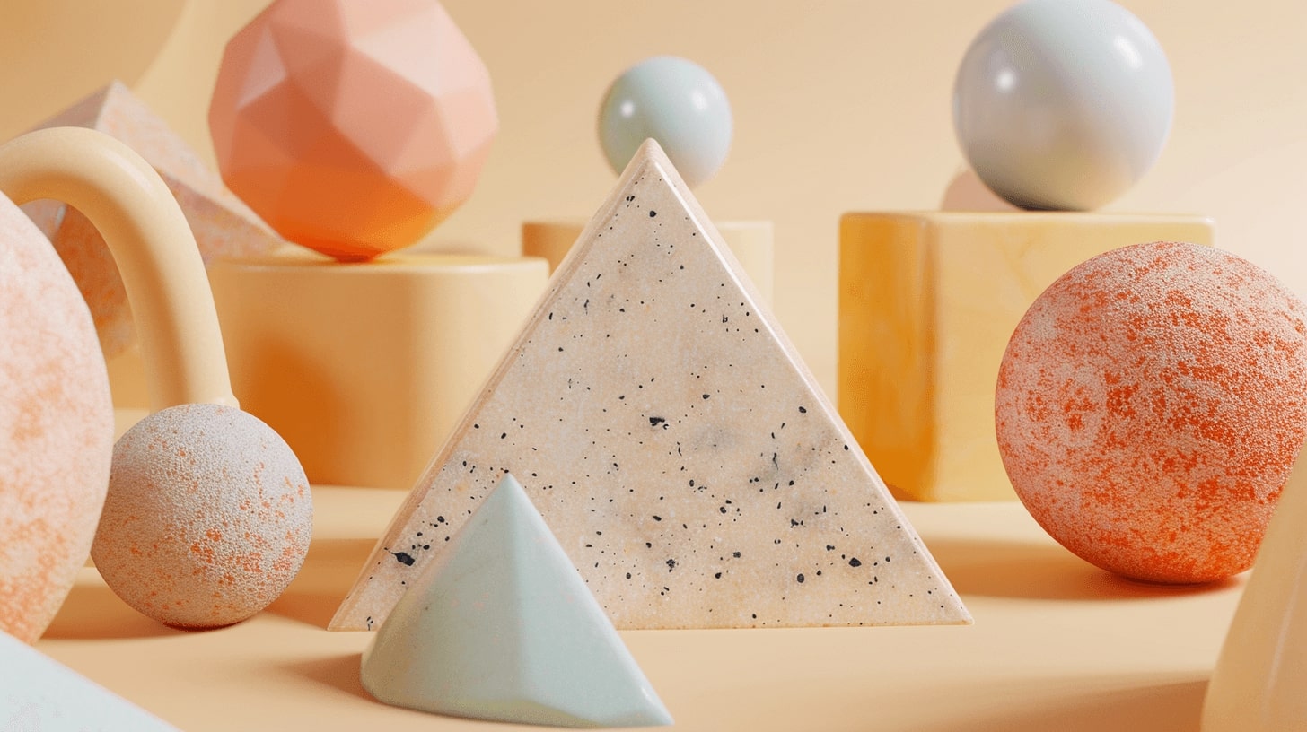 Sculpturi în piatră reprezentând forme geometrice tridimensionale